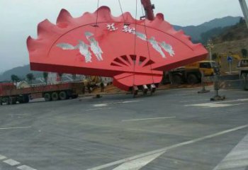 現代不銹鋼扇子雕塑安裝現場