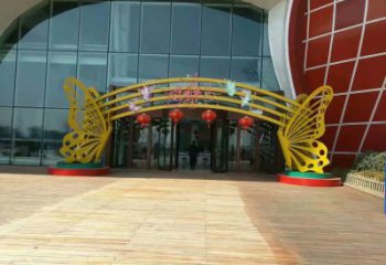 蝴蝶大門雕塑,烤漆不銹鋼大門雕塑制作