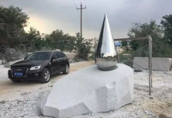 大型鏡面不銹鋼水珠雕塑實景安裝