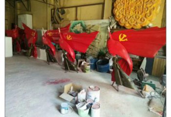 不忘初心雕塑經常以黨旗造型相結合,將不忘初心牢記使命刻在黨旗上面這與總書記提出的不忘初心牢記使命的內涵也是相得益彰的。黨旗雕塑,我們最常的一類黨建雕塑就是黨旗了,它可以是一個單獨的黨旗造型也可以與其他的黨建標語相結合,一般在廣場、政府機關等場合比較常見。